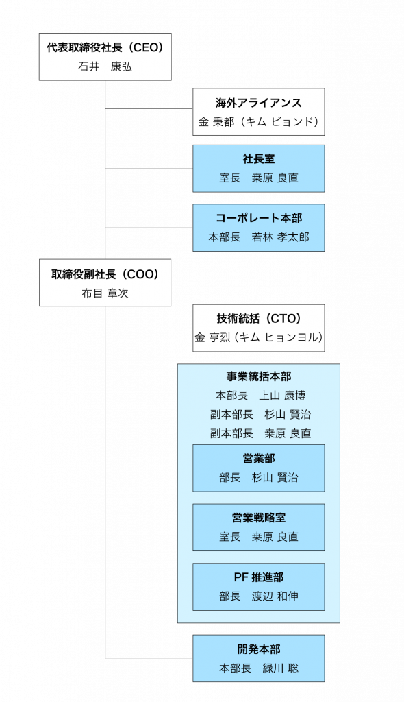 | 役員 | 代表取締役社長(CEO) | 石井 康弘 |