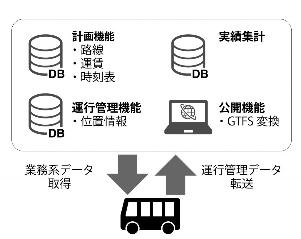 地方の小規模バス/コミュニティバスの運行効率化と経路検索アプリへの情報掲載促進を図るため、小規模なバス事業の運行企画、運行管理、GTFSのデータ作成等、標準的なシステムで行う取組。